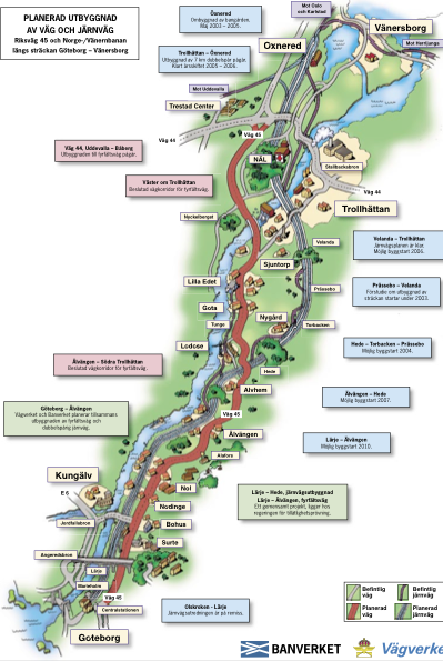 banverket - vägverket illustration av ny sträckning av väg- och tågtrafiken